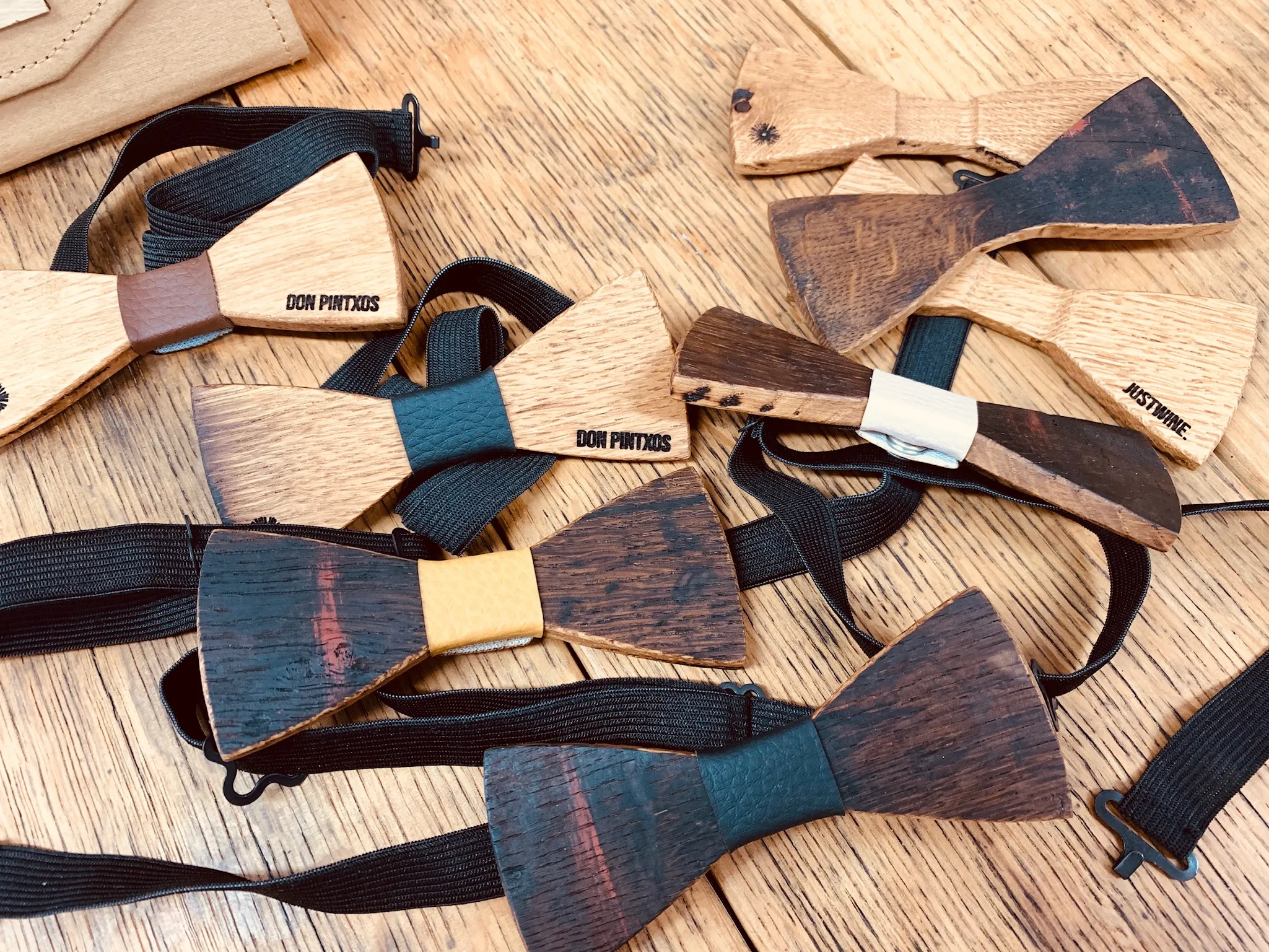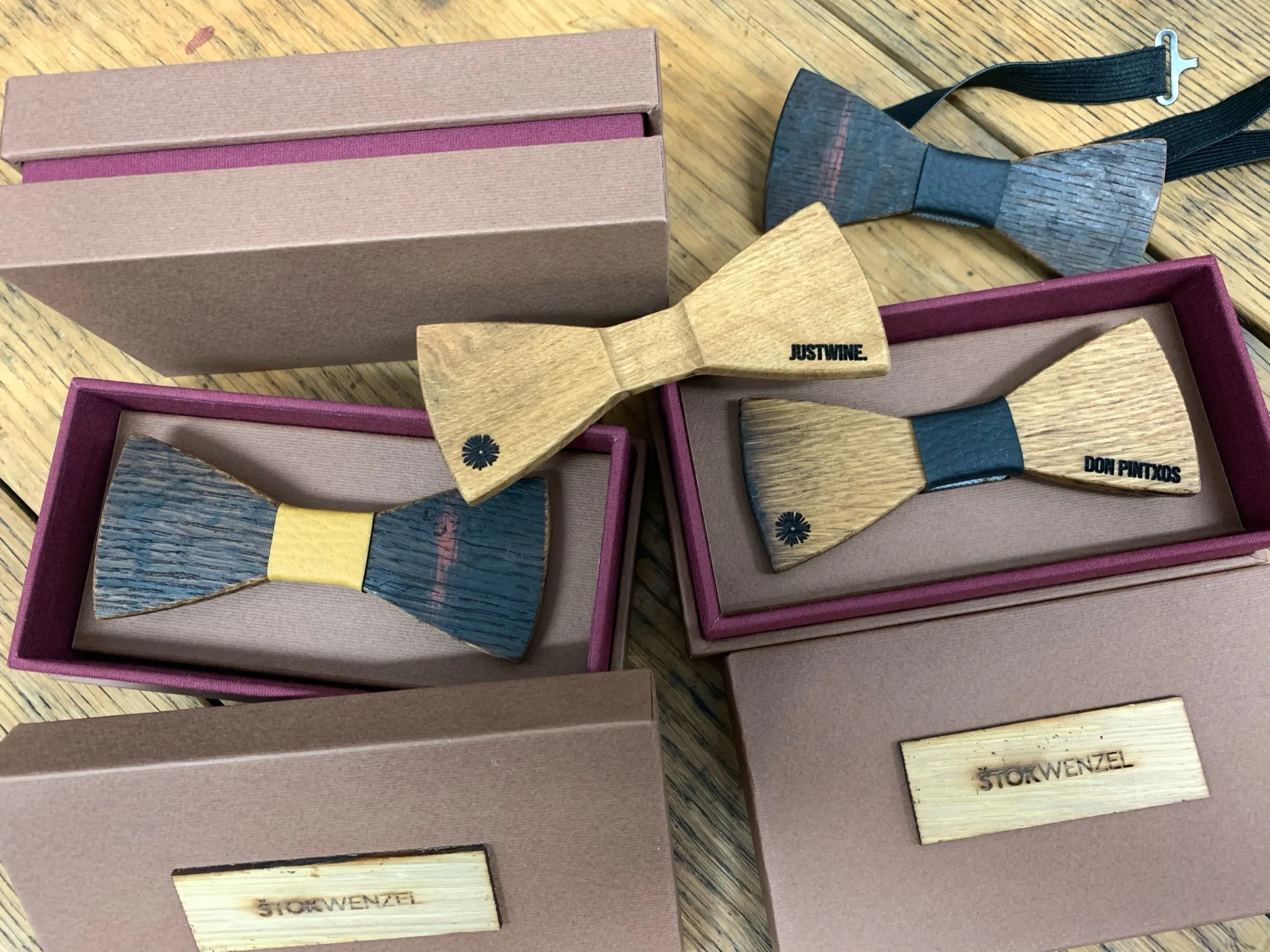 Metuljček narejen iz skrbno izbranega lesa vinskega soda. Vidna preteklost zunanjosti soda ali vina ki je zorelo v njem. V kompletu s trakcem, gumico in zaponko, ga lahko uporabljate na obeh straneh.